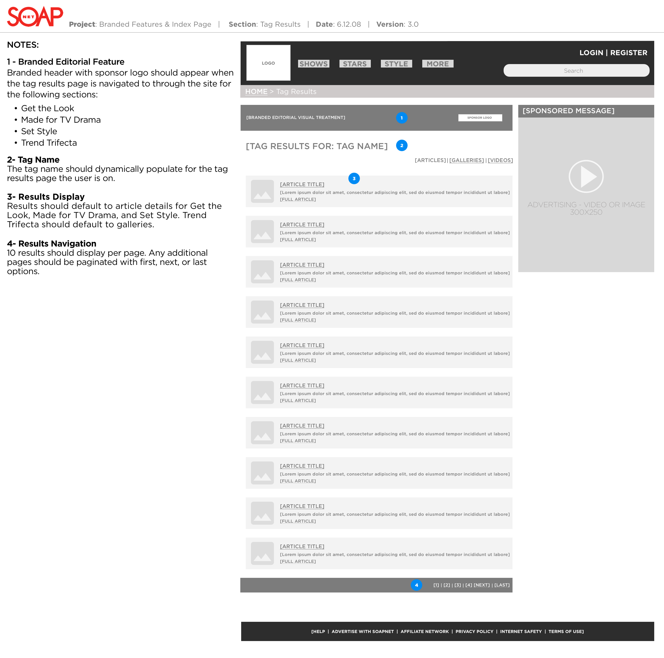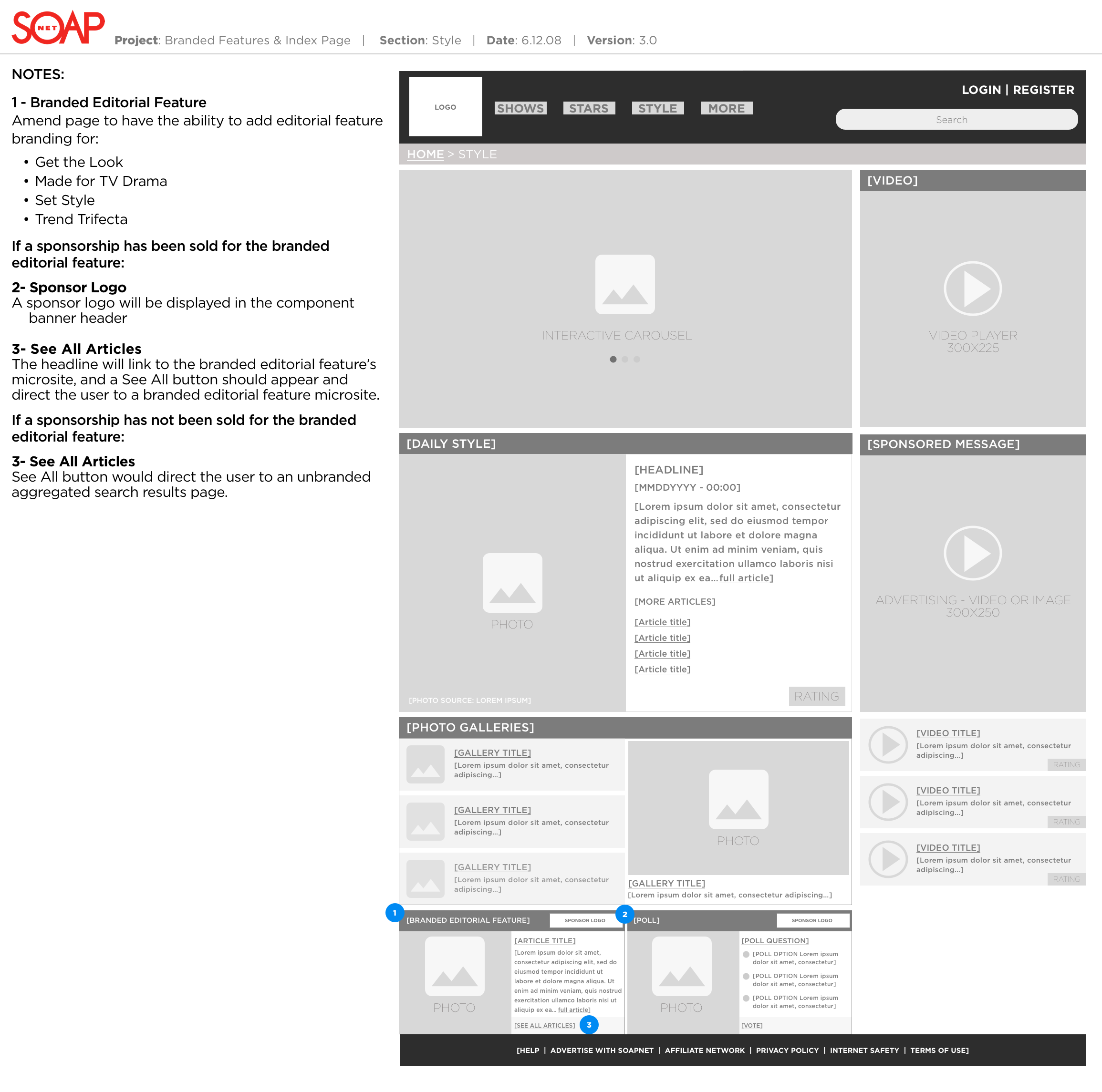 The SOAPnet television channel needed a rebranding and wanted to start with the digital channel before introducing on-air. SOAPnet.com needed to encompass shows, stars, and style streams of content and allow for sponsorship of each of the sections.